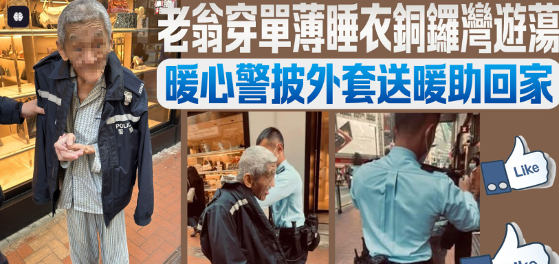 老翁穿单薄睡衣铜锣湾游荡 暖心警披外套送暖助回家