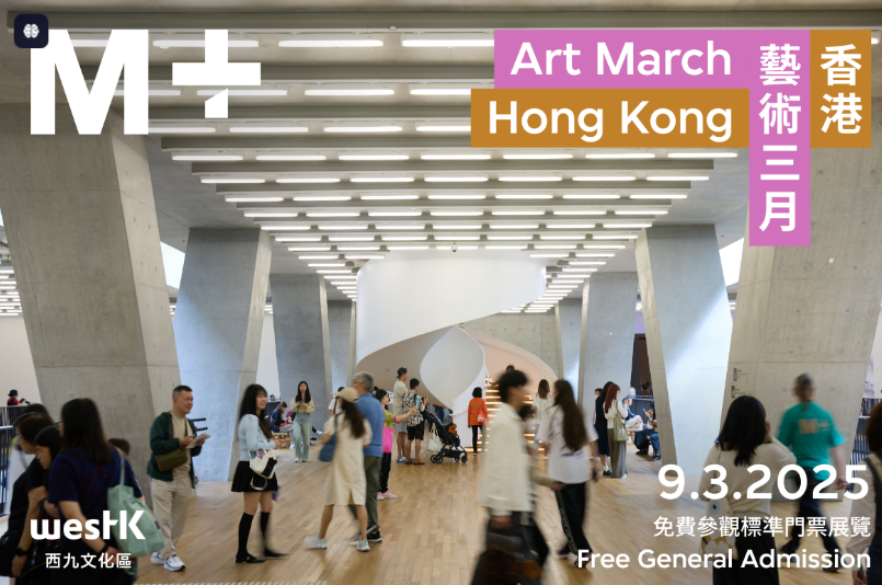 一年一度的「香港藝術三月」即將舉行。西九文化區今日(27日)表示,M+博物館將於3月9日免費開放標準門票展覽,訪客毋須提前預約。