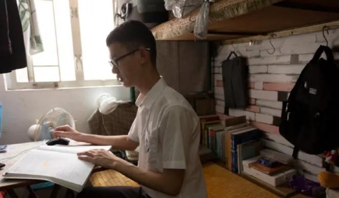 这位小伙子叫何文谦,2015年从内地来香港就读初一。