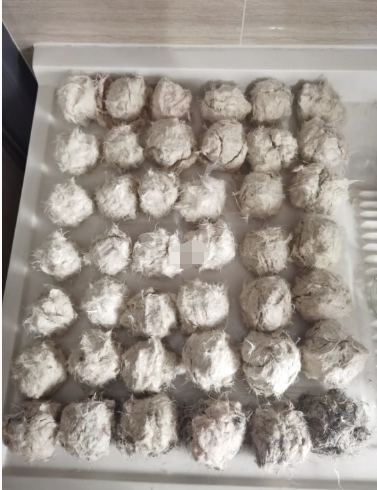 3按照商家给的被壳充绒的顺序,把平分好的羽绒通过商家给的管子用一根棍子塞进去。
