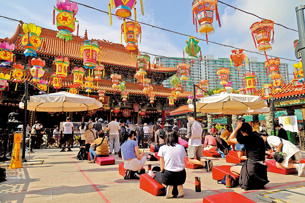 昨日早上七时半,黄大仙祠还未开门,便已有三、四十人在祠外等候入内,所有善信入祠前必须扫描「安心出行」及「疫苗通行证」。