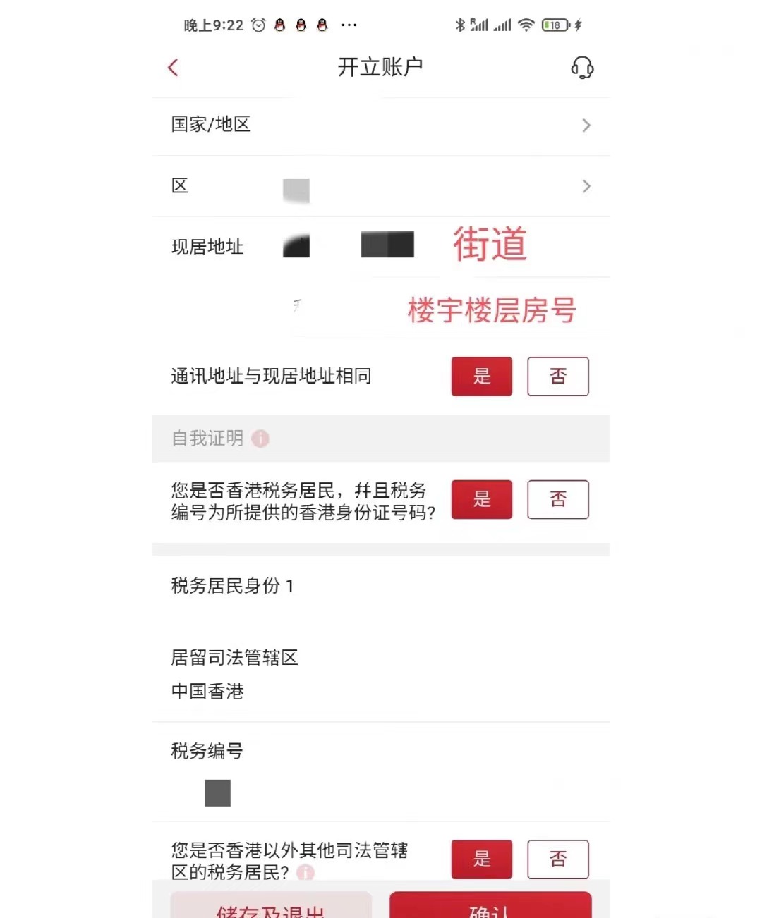4.要注意税收编号,第一个税收编号会自动识别中国香港身份,税收编号是完整的香港身份证号,括号里的数字也要写进去,不用写括号