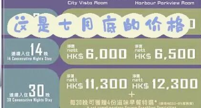 我们7月底定的酒店,有两个月连租的优惠package,还说可以免费升级海景房,均价10500一个月。