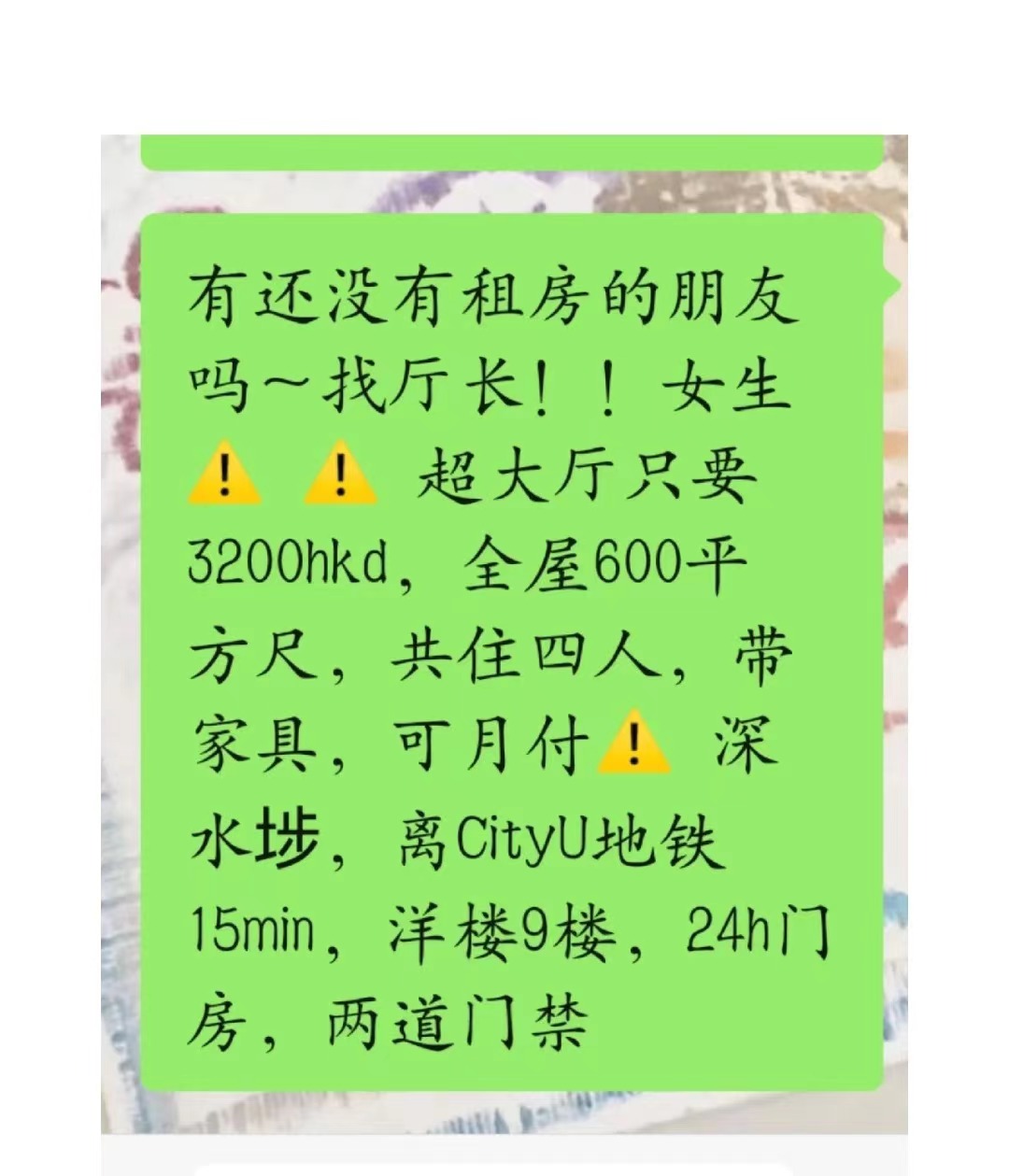 深水埗,离CityU地铁15min