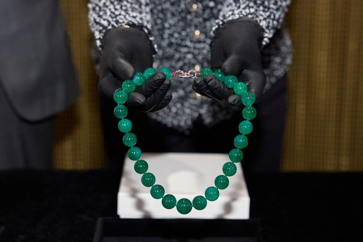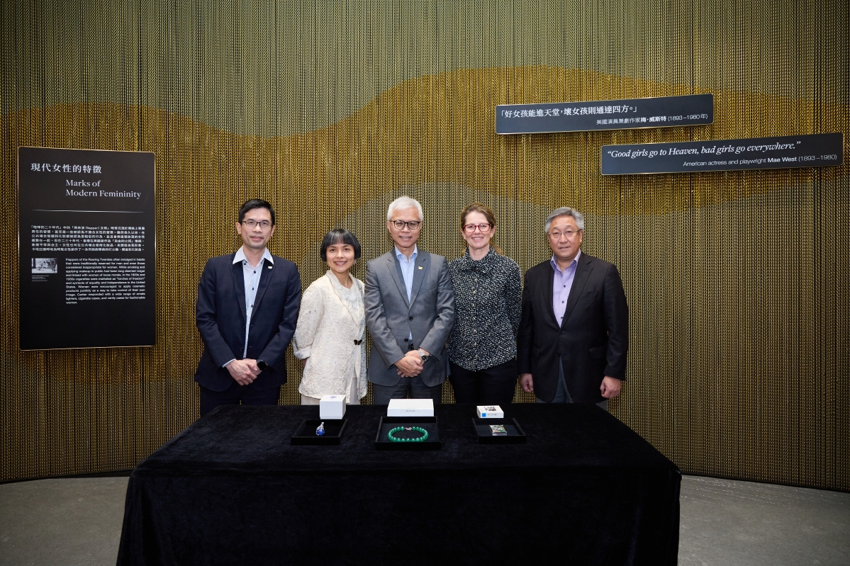 此次展览三件具代表性的珍品昨日于博物馆开箱仪式中正式亮相。其中一件为卡地亚于1928年制作的中国风格化妆盒,作品灵感来自路易.卡地亚(1875–1942年)伉俪收藏的一件清康熙五彩庭院仕女图瓷盘。另一珍品为卡地亚首位女性创意总监贞.杜桑(1887–1976年)于1949年设计、为温莎公爵夫人(1896–1986年)所珍藏的美洲豹胸针,象征力量、勇气及自主。这枚胸针不但是杜桑最具代表性的作品之一,亦从此改写了珠宝对女性的意义,美洲豹更成为卡地亚的标志性图案。最后一件展品印证了中国文化对卡地亚珠宝的启发,是美国社交与时尚名媛芭芭拉.赫顿(1912–1979年)于1933年结婚时获赠的卡地亚项链,其所用的翡翠正是中国装饰艺术中常用的名贵宝石。赫顿后来更再委托卡地亚制作一枚与项炼相配的翡翠戒指。