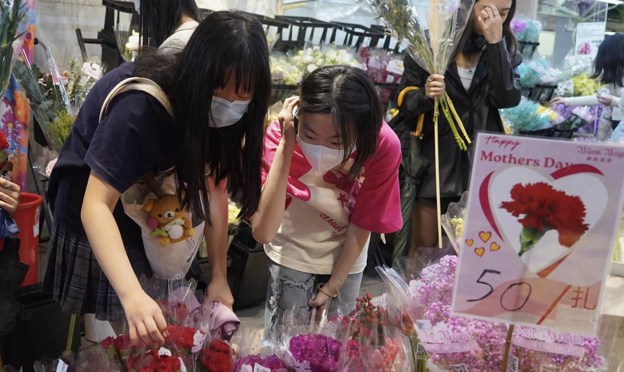明日(5月14日)就是母亲节,众多市民到花墟选购花束,向母亲表达谢意。虽然今日(13日)天公不作美,下起微雨,但仍无阻市民买花的热情。不少人手捧鲜花,满载而归。