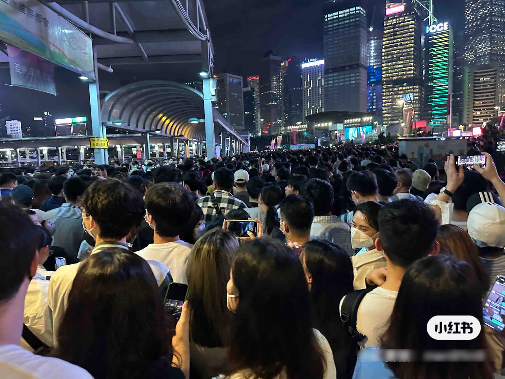 有其他网民在帖文下评论道:“有点可怕 希望不要发生踩踏”,发帖者回覆指:“根本已经没有下脚的地方了,挤到背贴背”。也有今晚同样在场的网民表示:“在天桥那里真的差点,吓死人,有一堆人挤在中间拍照,想出去的出不去……”