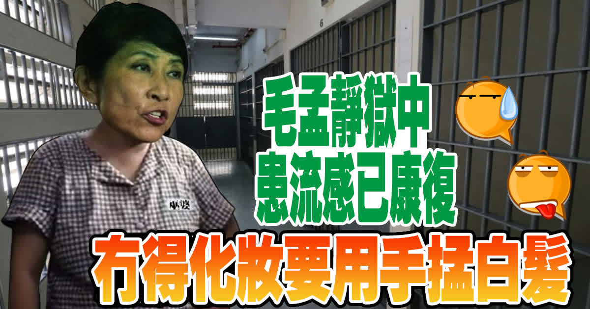 因参与非法「初选」的立法会前议员毛孟静仍在还柙,另一名前议员邵家臻噚日喺社交平台发文透露佢嘅铁窗生涯,话毛孟静精神很好,瘦咗些少,之前还患上流感,都已经康復。人在监仓,没有化妆品化妆,白头髮都只能用手掹走喎。