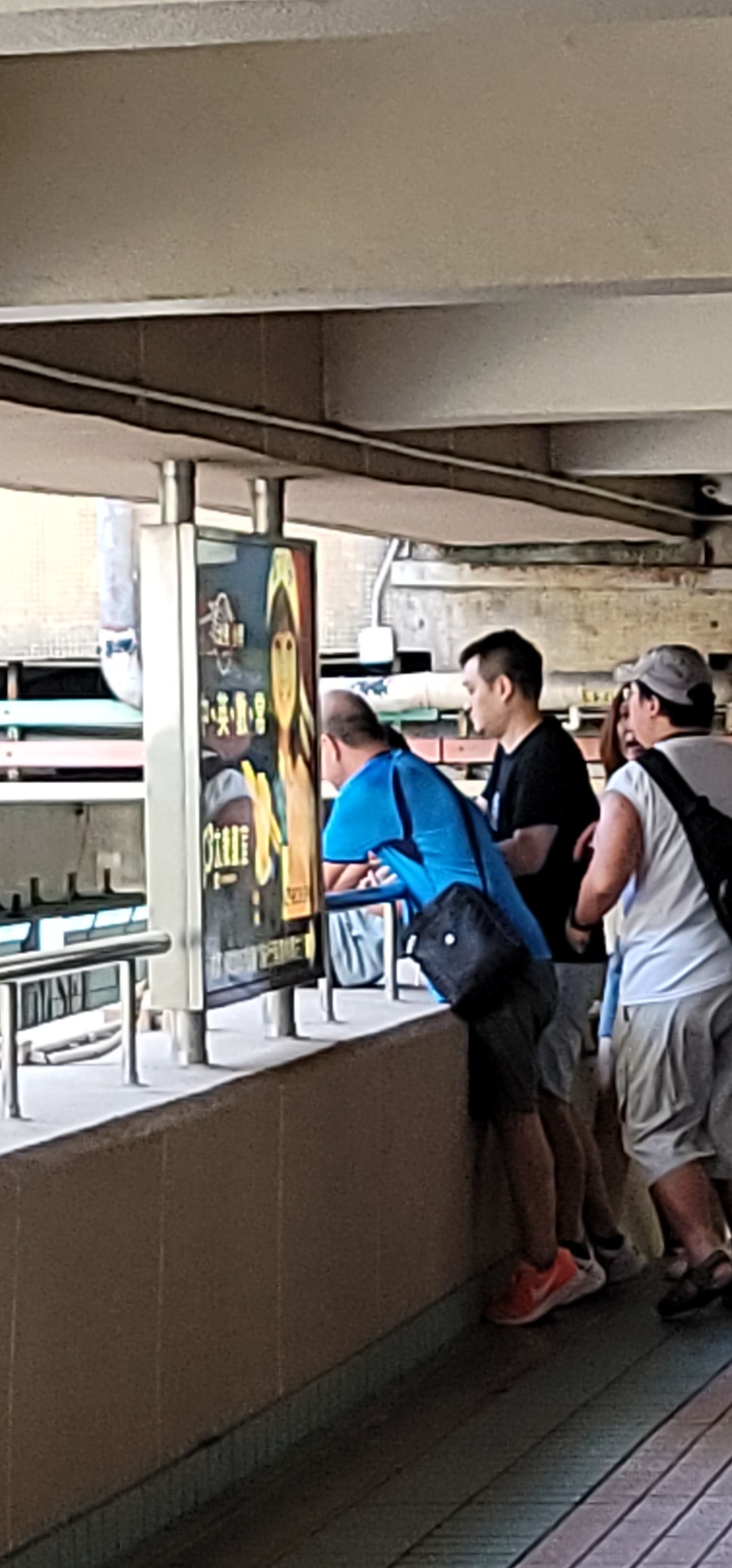 大埔广场男童情绪激动天桥企跳,3热心途人抱回安全位置。(Fb图片)
