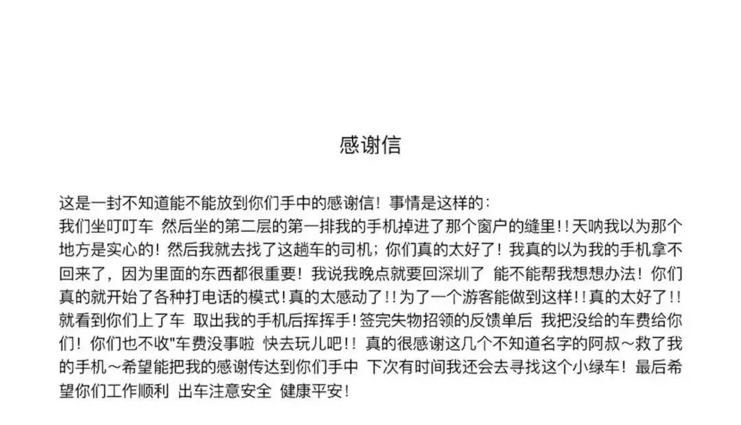 除了写了一篇名为“香港,你真的太让我感动了”的帖子,游客还特意写了一封感谢信,送到电车公司。