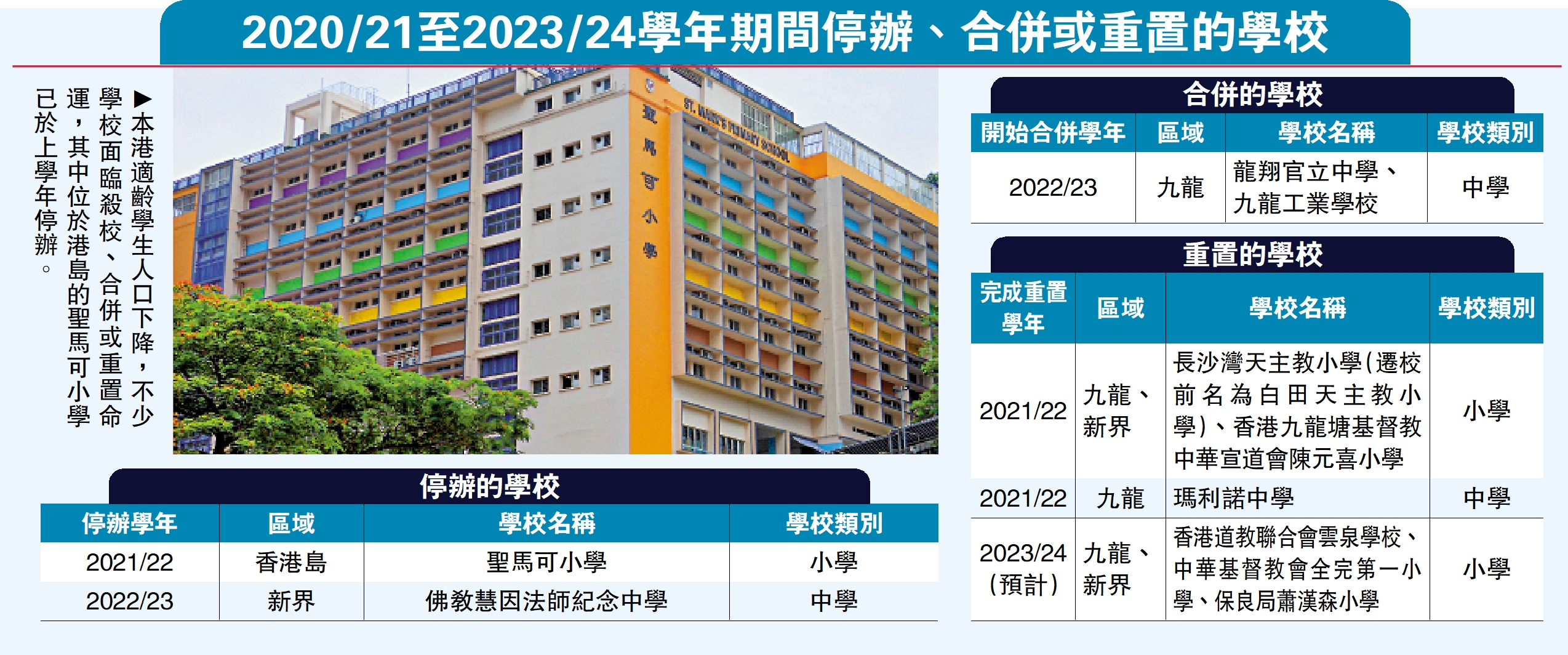 据教育局提交立法会文件显示,2022/23学年,全港共有37间小学仅开办一班小一,当中以离岛区最严重,有6间小学仅开办一班,其次为北区,有5间。各区中学学生人数均普遍下跌,2025学年仅有54980名中一学生,较本学年跌1841人,当中以元朗区跌幅最严重,本学年有5221名小六学生,但2025/26学年则只有4614名;湾仔区、西贡学生人数则有所上升。