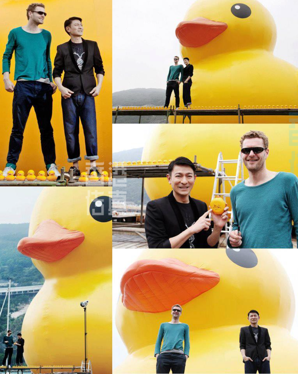 2013年刘德华与大黄鸭创作者霍夫曼于大黄鸭前合影留念图/刘德华粉丝同学会