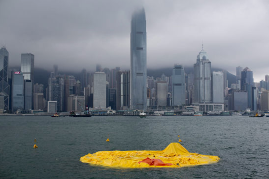 上次大黄鸭漂浮在尖沙咀码头,这次大黄鸭换了个地儿,就在大家乘游艇看周杰伦演唱会的海域附近——毗邻添马公园及中西区海滨长廊(中环段)。