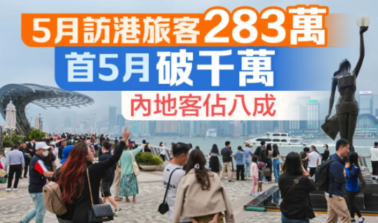 累计今年首5个月,本港已录得1013万人次旅客访港,为疫情前平均数约40%,内地旅客占约79%。