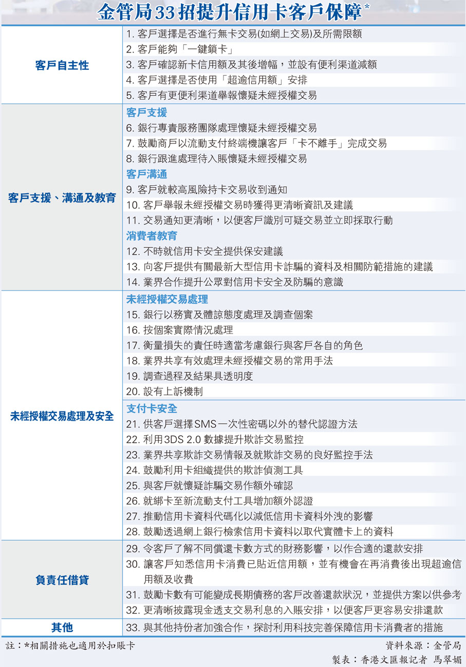 金管局33招提升信用卡客户保障