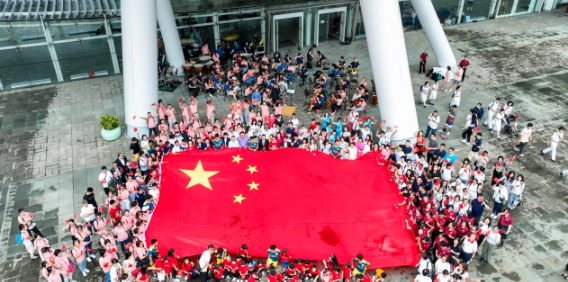 活动近尾声时,一面巨大的国旗在现场缓缓展开,将活动气氛推上了高潮。