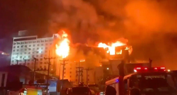 柬埔寨首都金边市中心一家夜店起火。网图