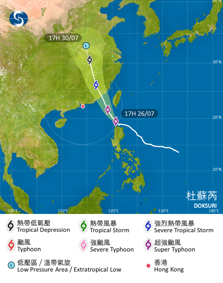 香港天文台预测,27日及28日,“杜苏芮”将横过南海东北部,并逐渐移向广东东部至福建南部沿岸地区。受其外围下沉气流影响,华南27日持续酷热,亦有高温触发的骤雨及狂风雷暴。