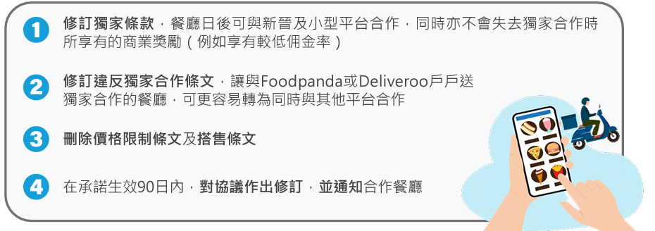 竞委会早前调查外卖平台Foodpanda及Deliveroo涉嫌反竞争行为,发现两间外卖平台与合作餐厅订立的协议条文,所施加的某些要求或会损害竞争。该两间外卖平台就调查结果作出承诺,并提出修改相关条款措施。竞委会早前指,相关措施无须经审裁处处理,并就此向公众展开谘询。竞委会主席陈家殷表示,相关公众谘询已经完结,收到不同持份者意见,正陆续审议,适当时候会再交代。