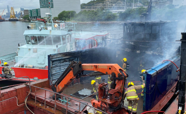 据东网引述码头负责人指,起火货船已在上址停泊数日,主要运载英泥建材等前往长洲,今晨突然无故起火,幸船上无人。