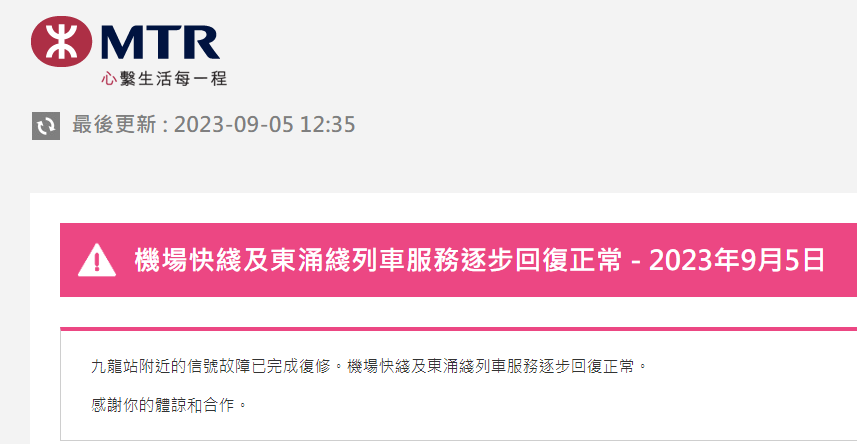 及至中午12时许,有关信号故障已完成复修,机场快綫及东涌綫列车服务逐步回复正常。