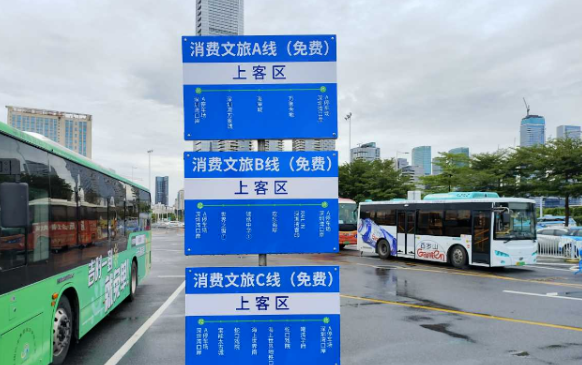 消费文旅专线分为A线、B线、C线,覆盖南山区热门商圈,分别开往深圳湾万象城、海岸城、益田假日广场、欢乐海岸、海上世界等核心商圈,票价免费,线路服务时间为9:30-21:30。