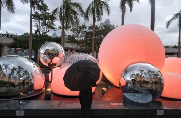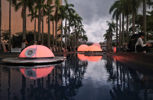香港康乐及文化事务署9月15日起至10月8日在香港文化中心露天广场的水池展出互动光影装置“月亮制造机”,为癸卯年中秋綵灯会揭开序幕。“月亮制造机”由本地团队一口设计工作室打造,四位成员包括张国麟、梅诗华、孙舒雯及黎雪慈,团队在香港文化中心露天广场水池设置互动光影装置,透过塑像及感测科技营造各种光影效果,装置颜色会因应附近人潮多寡而转变。
