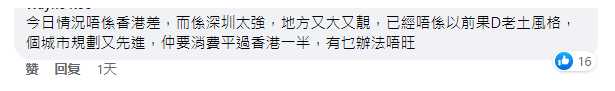 “以前去深圳的人是为贪便宜,现在去深圳是为性价比。”有香港网友认为,今日情况并非是香港退步,而是“深圳太强,地方又大又靓,已经不是以前那种老土风格,城市规划又先进”,消费还比香港便宜一半,没道理不旺!