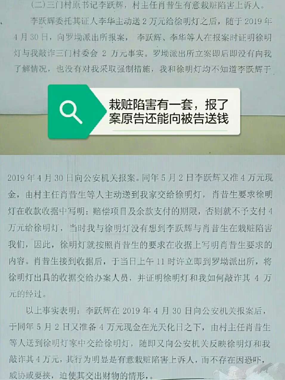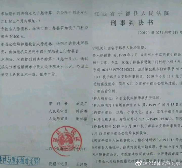 这不,2019年5月,江西赣州于都县罗坳镇三门村委会原班子采用伪造协议书签名、报了案还能向被告送钱等手段骗两法院和广大百姓及栽赃陷害了村民。