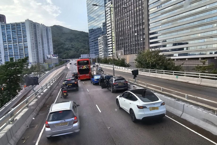 现场消息指,其中一架私家车的安全气袋弹出,一名男伤者在事发后离开私家车,席地而坐待救。