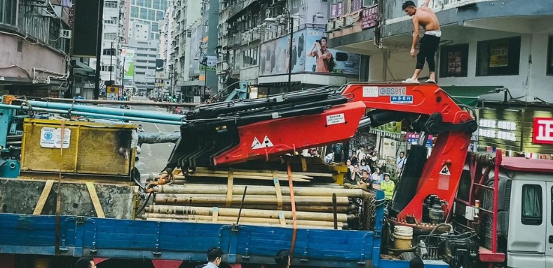 今日(18日)上午9时许,一部吊臂车因应交通灯号,停在旺角亚皆老街83号对开等候转灯期间,一名赤膊男子突走出爬上吊臂车,危站在离地4米的机器上,挥动铁棒,但他并无叫嚣。大批警员接报到场,部分戴上头盔及手持盾牌,与该名赤膊男对峙,有持盾牌警员亦爬上吊臂车戒备。