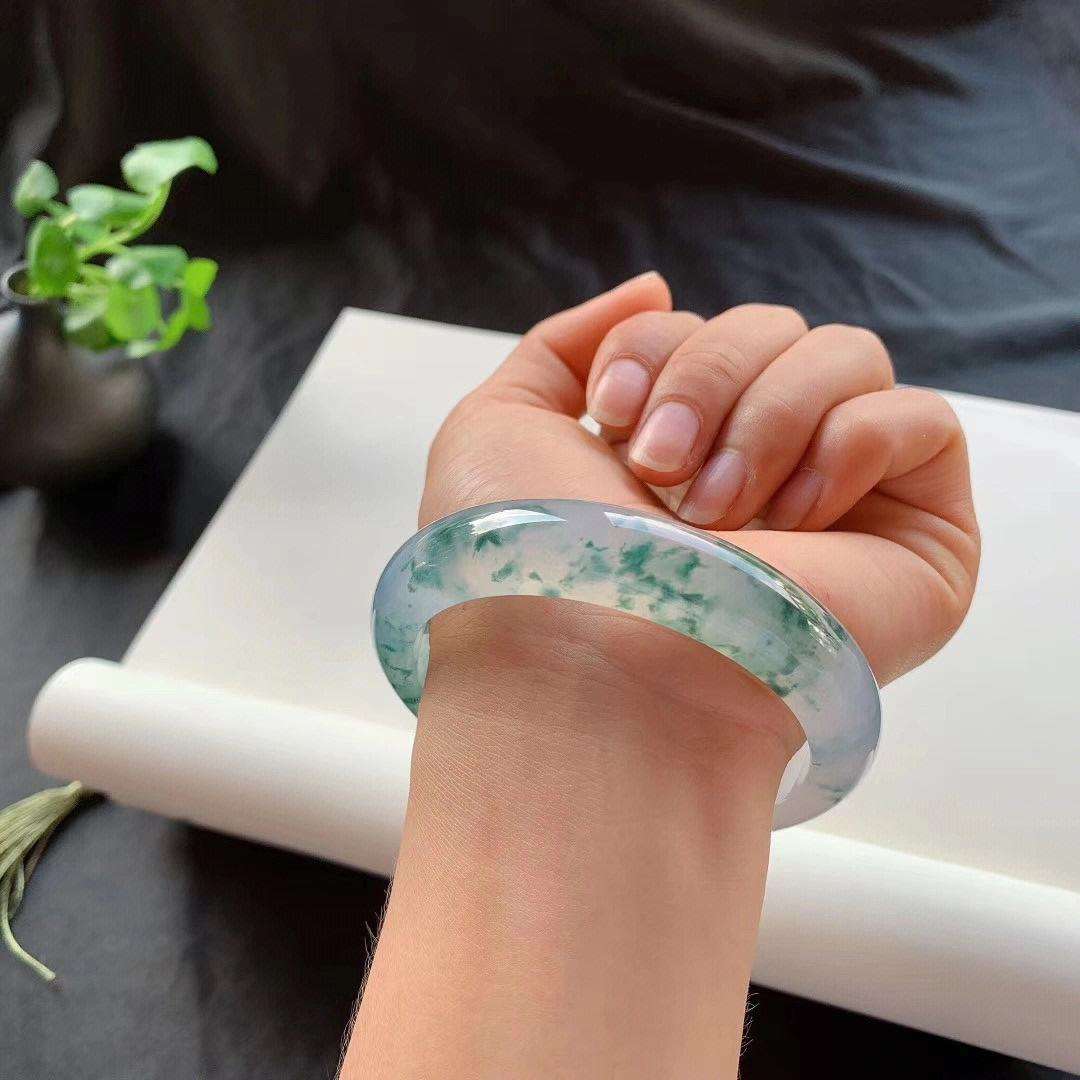 当时她买翡翠镯子是奔着养心养人去的,所以常常佩戴。突然有一天,她看翡翠手镯怎么看都觉得不对劲,再仔细一看发现跑水了。