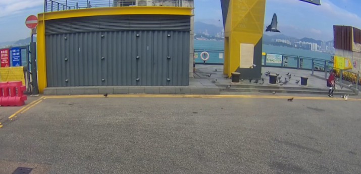 片段所见,一名身穿红黑间条上衣、黑色长裤及戴太阳眼镜的中年女子,中午在中西区海滨长廊用食物碎喂野鸽,之后慢慢靠近鸽群,并在迅雷不及掩耳下徒手捉起两隻鸽子。被捉的两隻鸽子不断拍翼挣扎,但女子未有放手,反而继续衝入鸽群,捉第3隻鸽子。