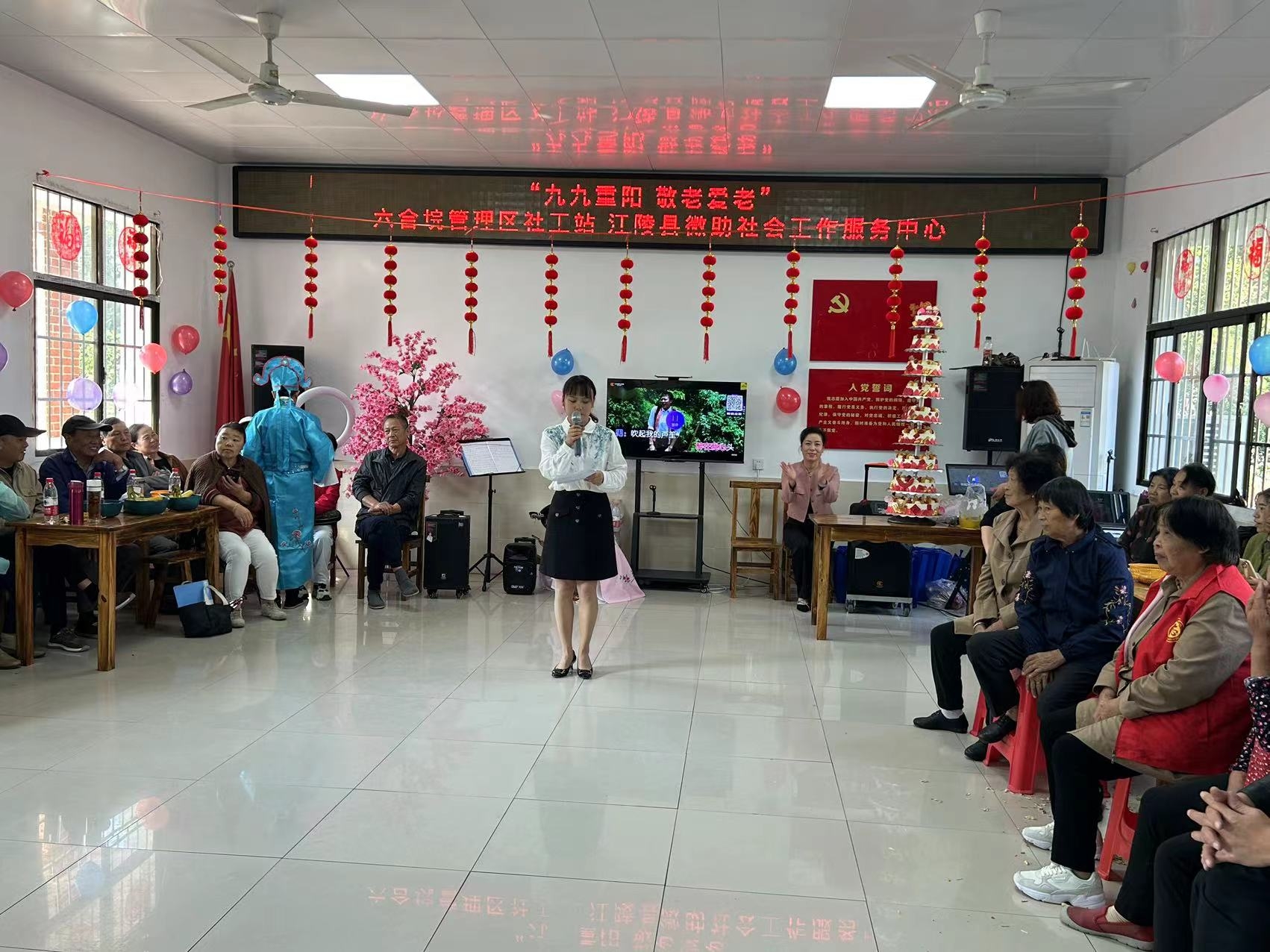 “九九重阳节·浓浓敬老情”重阳节主题活动在社区幸福大食堂举行,12位高龄老人过了一个热闹非凡、特别有意义的90周岁集体生日会。志愿服务队、社工们精心准备了舞蹈、歌曲、小品、葫芦丝演奏等节目,为老人生日会助兴。在惊喜视频寄语环节,志愿者播放漂泊在外的游子祝福视频,子孙们祝福爷爷奶奶健康长寿。心意满满的生日祝福让老人们喜悦之情溢于言表,整个场面热闹而温馨。