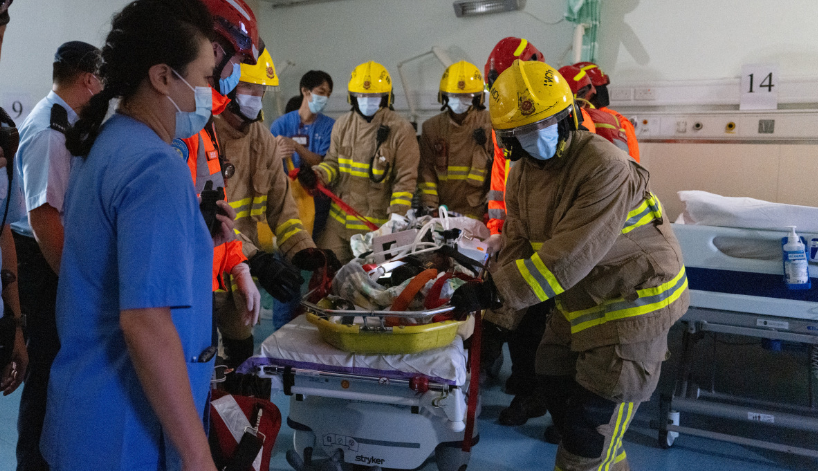 警务处港岛总区联同医院管理局、消防处、运输署、机电工程署、地政总署以及香港电灯在跑马地东华东院举行代号“舞凤”的跨部门重大事故演习 ,以应对大规模停电事故。(政府新闻处)