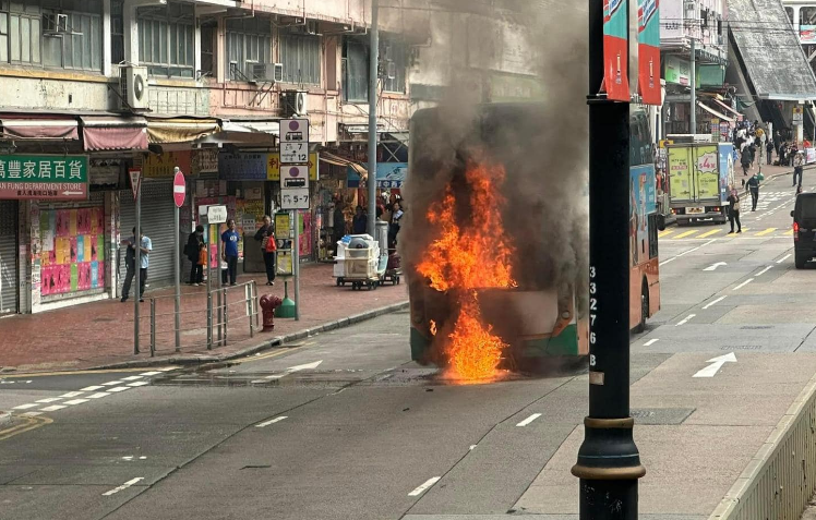 今日(5日)再有城巴出现事故。下午1时38分,一辆城巴82号线行经鰂鱼涌英皇道与滨海街时,车尾冒烟继而起火。