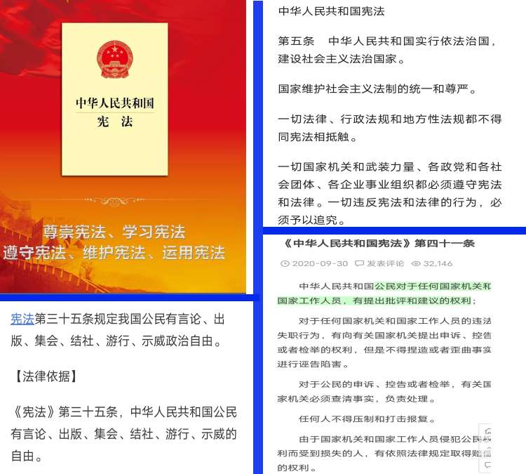 2.作为主审法官,请问你知道国家根本大法《宪法》第四十一、三十五、五条规定吗?网络发布有事实依据之事构成违反法律了吗?还有你知道《法官法》第46条中第二款规定吗?以及《刑法》第399条第二款规定吗?如果连国家根本大法《宪法》都不知道,那你们几个(一审、二审和再审)主审法官在《宪法》面前宣誓就好比和尚和尼姑在念经,用嘴不入脑。