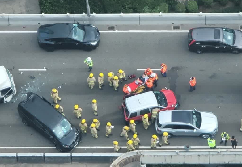 今日(11日)早上8时38分,荃湾路往九龙方向发生6车相撞意外,涉及1中型货车、1的士及4部私家车。