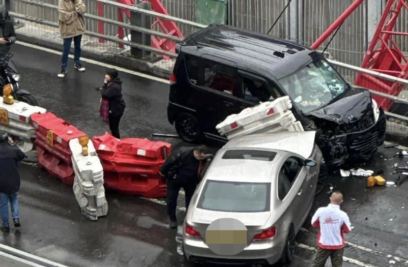 今日(17日)下午2时许,一辆银色私家车沿加士道居天桥往红磡方向行驶,至骏发花园对开时失控撞向路中水马,再越线撞及一辆驶至的黑色七人车。现场多个水马被扫毁,两车车头凹陷严重变形,之间夹有一个水马。事件中至少四人受伤,全部需要送院治理。