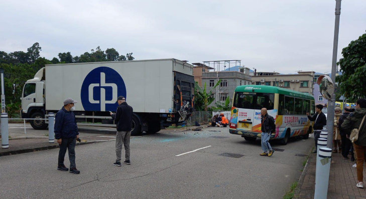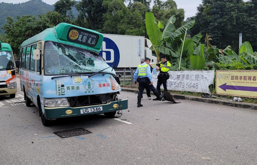 现场消息称,事发时20P小巴沿凤园路直驶,涉事货车则由小路倒车驶出,小巴司机随即扭軑闪避,惟货车车尾仍撞到小巴车头。相片所见小巴挡风玻璃爆裂,左车头被劏开严重损毁,意外原因有待调查。