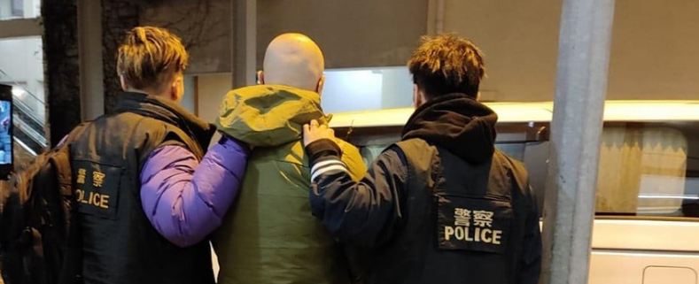 警方指,星期一(22日)接获报案,将军澳常宁路一个住宅单位怀疑被淋泼红油。人员经翻查大量闭路电视纪录,作情报分析及深入调查后,星期三拘捕这对父子,两人现正被扣留调查,案件交由将军澳警区反三合会行动组跟进。(图源:香港警方)
