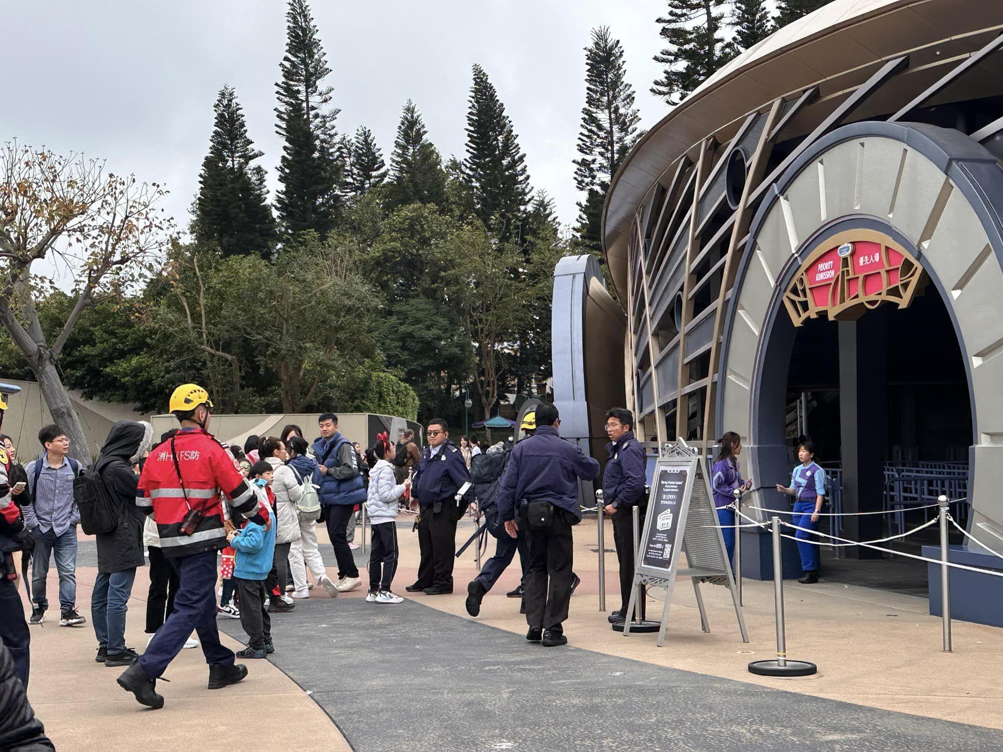 现场可见,警方及消防人员赶至现场救援。消息指,怀疑故障的游戏设施为“星战极速穿梭”室内过山车。根据官方网页显示,该游戏设施现时暂停开放。