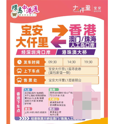 2月7日起,“环岛中港通”深圳宝安、龙华、前海往返香港迪士尼增至13班,其中前海出发10个班次,一线深圳宝安欢乐港湾、前海山姆往返香港经直达6班,早上出行时段约一小时一班;二线深圳宝安海雅缤纷城、万悦格兰云天(麦牙口腔)、创业天虹(广东中旅门店)一班;以及深圳宝安三线宝安登喜路国际大酒店、宝安大仟里、前海山姆一班和龙华线龙华天虹购物中心都将由早班车直达迪士尼,并都将直接由迪士尼返回深圳湾口岸,则从傍晚到观赏烟花结束增至4班,约每小时一班。