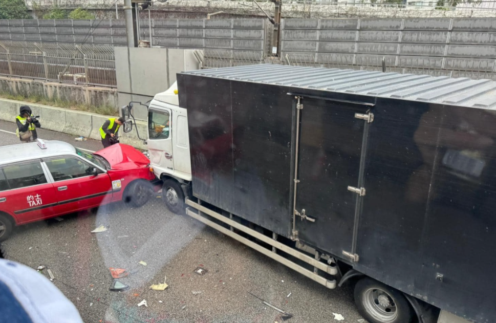 现场消息指,涉事货车事发时载重10.4吨,从后方驶至,怀疑收掣不及撞向两人,的士再遭重创车头损毁。警方正调查事故成因。