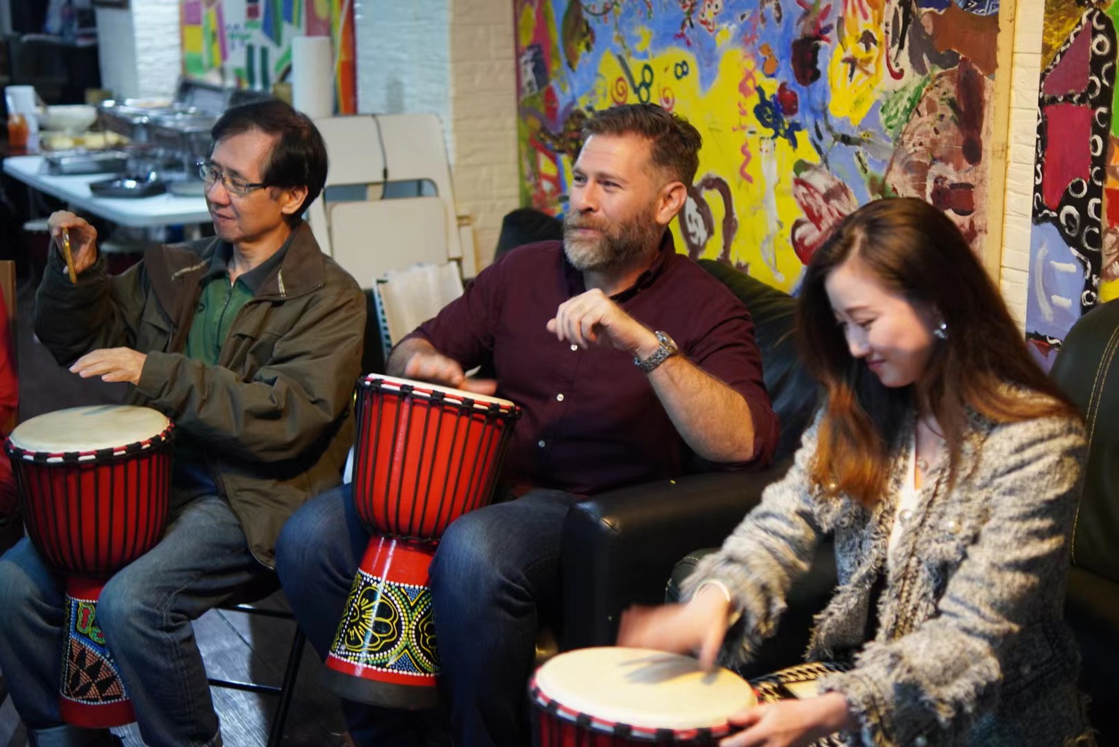 活动的参加者聆听来自非洲的音乐,感受异国文化的韵律。(受访者供图)