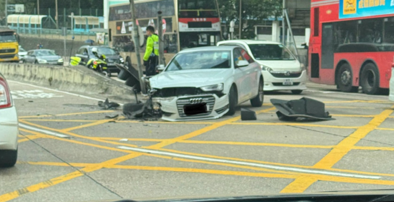 警方昨日(23日)下午近2时接报,指牛池湾一部白色Audi私家车沿清水湾道上斜。驶至彩云圣若瑟小学对开路口时,怀疑失控撞毁两支交通灯及一个交通标志,及后车上男司机及女乘客落车,往彩云邨方向逃之夭夭。警方接报到场调查,并于附近兜截,又出动缉毒犬搜车,惟没有发现。目前案件仍在调查,意外期间现场交通一度繁忙。