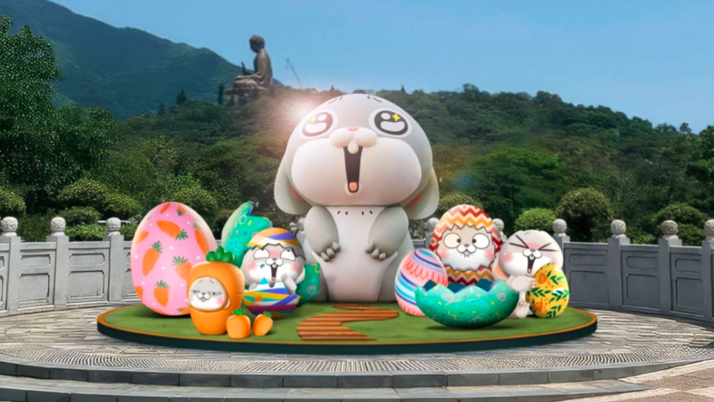 人气插画角色“好想兔” 跳入昂坪市集大玩“好想兔寻蛋派对@昂坪360”,昂坪市集圆形广场设置了3.5米高的“好想兔”大型复活节装置,“好想兔”亦会在复活节假期期间现身市集,化身亲善大使与粉丝互动和见面。