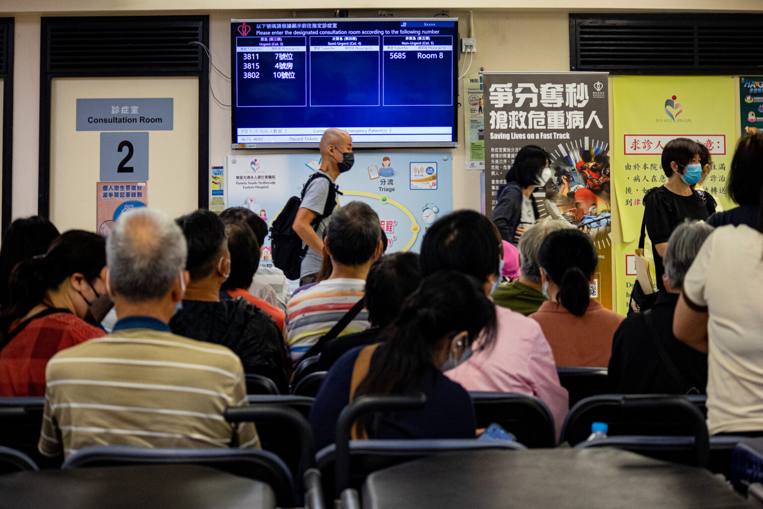 医管局指,急症室正处理大量等候已久的病人,呼吁病况轻微的病人考虑使用私营医疗服务。