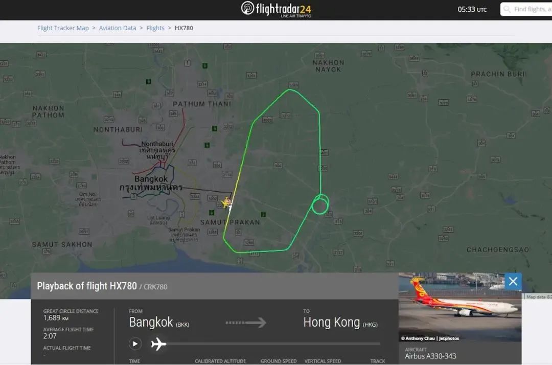 昨日从泰国曼谷飞往本港的航班HX780,在当地时间凌晨2时由曼谷返回香港时,于起飞不久发现机件故障,即时按安全程序折返,并安全降落曼谷机场,过程中没有任何人受伤。