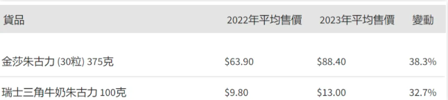 当中健达缤纷乐朱古力 43克x3 升幅亦达12.2%、卖$20.2,此货品在2022年已经上升了超过6%,连续两年均加价。